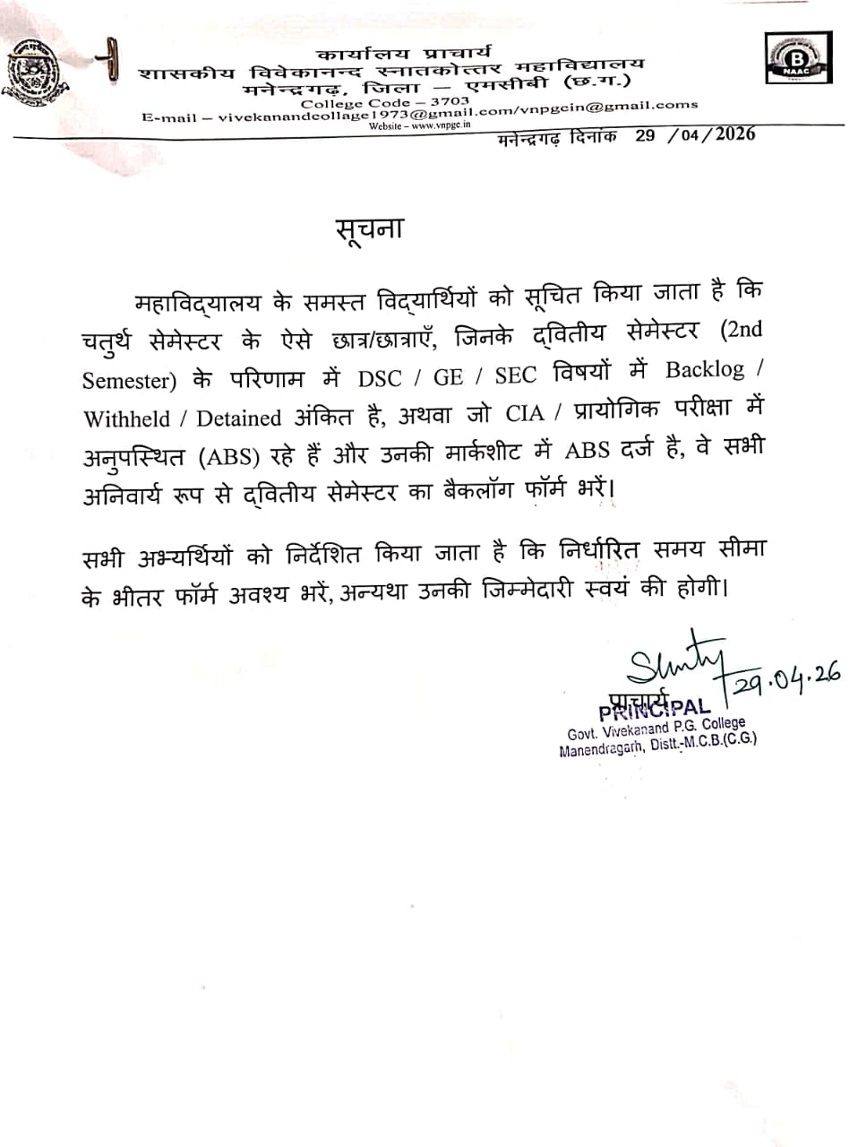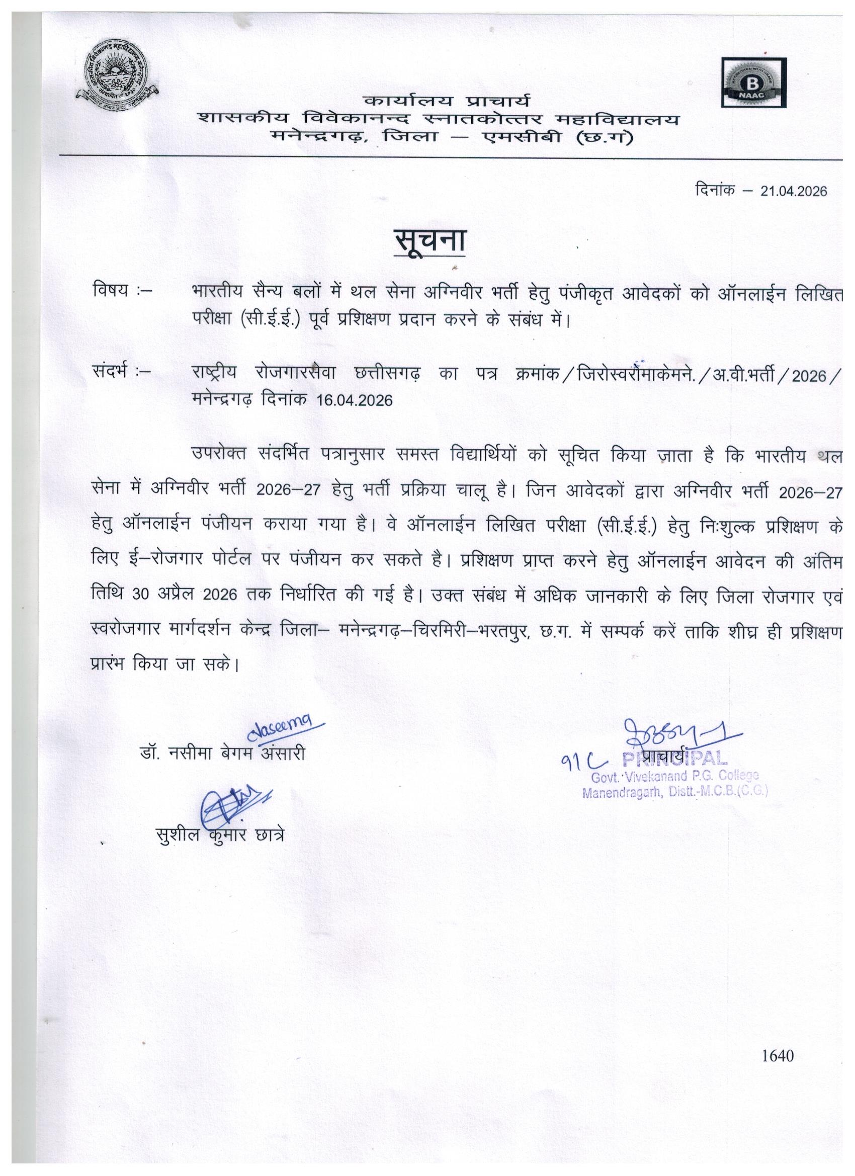 It is with immense pride and pleasure that I welcome you to Govt. Vivekanand PG College, Manendragarh, MCB, Chhattisgarh. Our institution stands as a beacon of academic excellence, fostering a culture of intellectual growth, innovation, and holistic development. Guided by the principles of Swami Vivekananda, we strive to empower our students with knowledge, values, and skills that prepare them to face the challenges of a dynamic world.